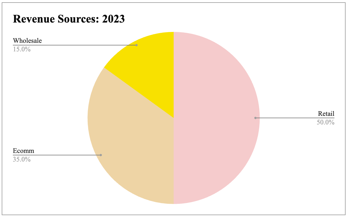 In 2023, they did $400 million in revenue across 134 stores, with just 15% coming from wholesale. A full 50% came direct from their stores, with another 35% driven by ecomm.