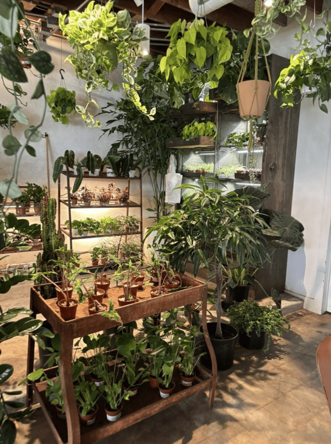 The interior palette is calm and warm with soft cream walls, terracotta light fixtures, as well as terracotta planters everywhere... and when I say everywhere, I mean the space is overflowing with botanicals, leaning into what’s trending now as "biophilic" design.