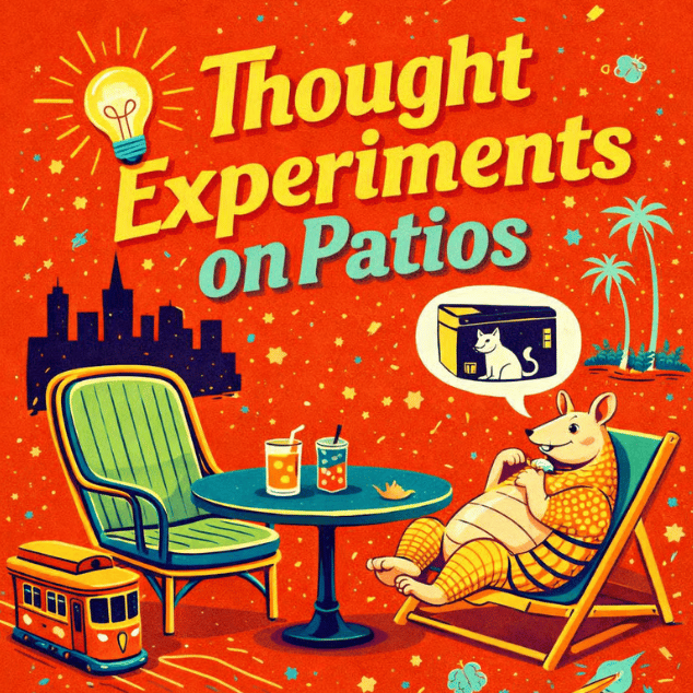 Join us April 8th over at Cosmic Pickle for the first installment of Thought Experiments on Patios. Cold beers, three hypothetical scenarios to discuss, groups re-mixing every 25 minutes or so – it’ll be a fun way to make some new friends, and have unhinged conversations without the small talk. Come on out!