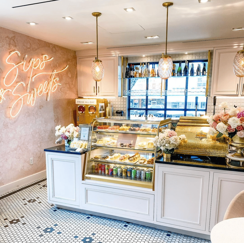 Built as an extension of the Kendra Scott flagship store on South Congress, Sips & Sweets is a cafe, open late seven days a week, serving up coffee, seasonal wine, and local beer & baked goods.