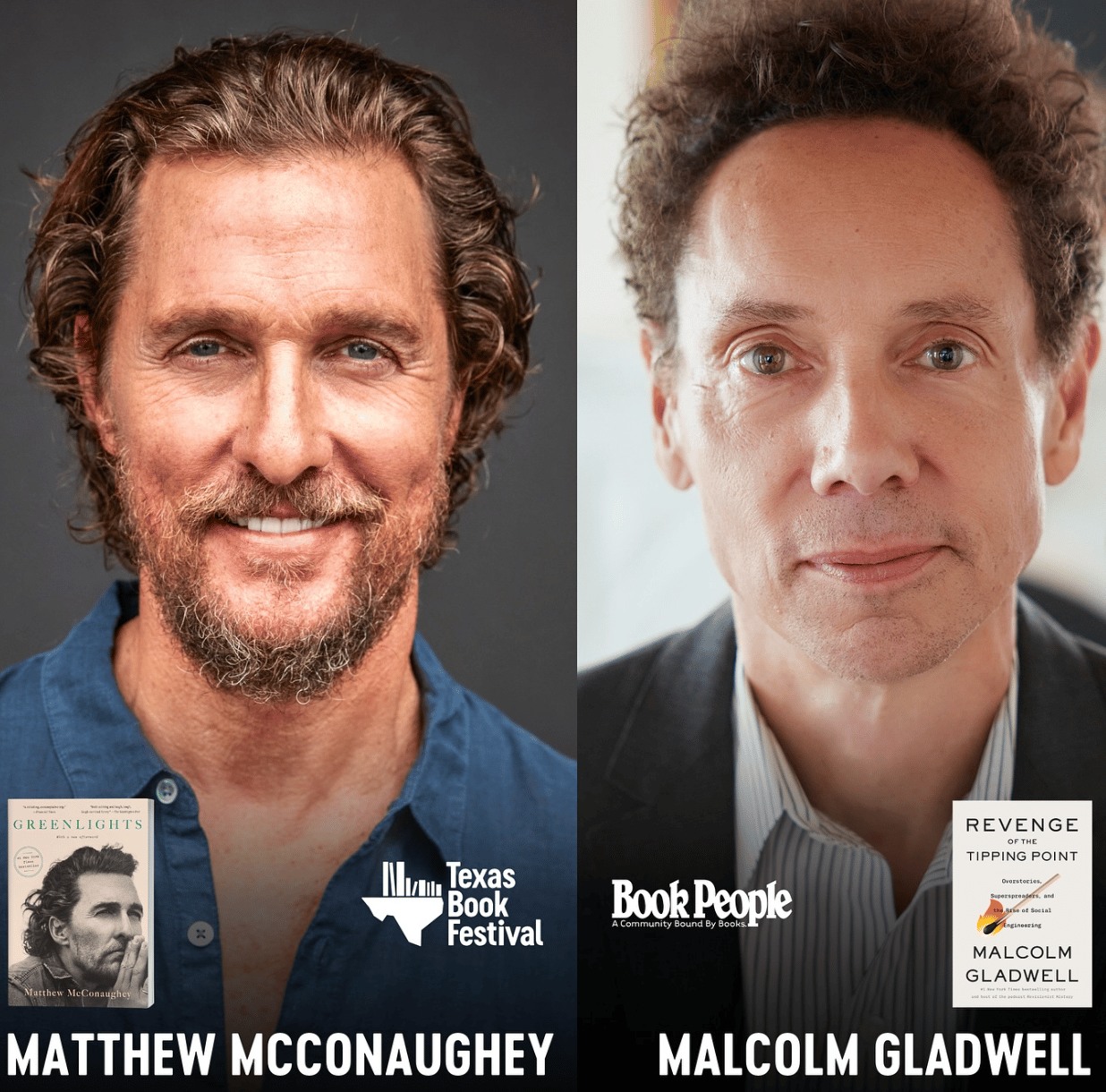 The Texas Book Festival is next month, and I just heard that there will be live sessions with Matthew McConaughey, and Malcolm Gladwell. Gladwell is touring for his new book, which apparently re-frames the concepts in The Tipping Point.